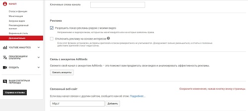1) Первым делом надо зайти по ссылке: https://www.youtube.com/advanced_settings. «Канал»-«Дополнительно».