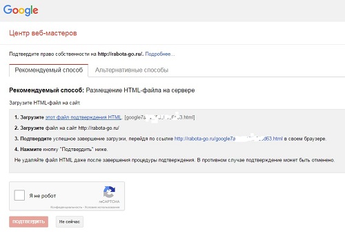 2) Вводим ссылку на сайт, жмем кнопку: «Подтвердите» . Это в случае, если вы владелец сайта.